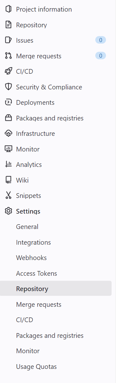 2. Settings의 Repository 클릭